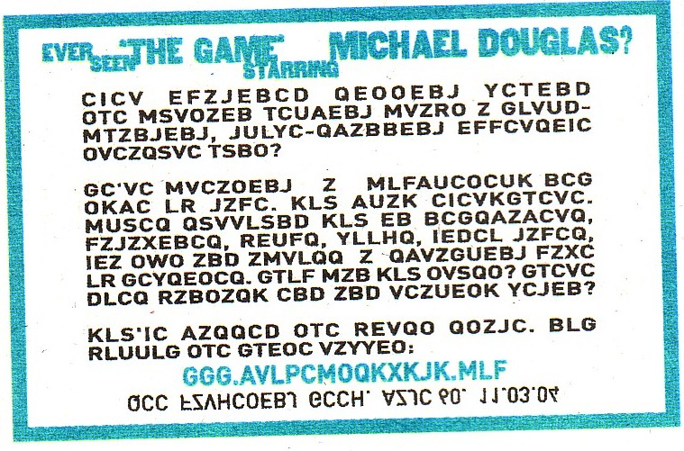 "EVER SEEN 'THE GAME' STARRING MICHEAL DOUGLAS"